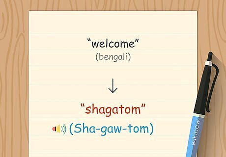 Bengali - Shushagatom/ Shagatom. The first word is for welcoming one person; the second word is for welcoming more than one person. Sha-gaw-tom