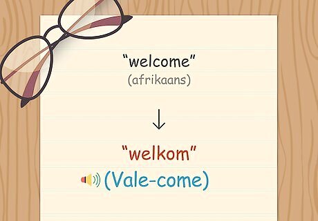 Afrikaans - Welkom. This language is partially based on English, so the pronunciation should be easy. The W sounds slightly like a V, almost a hybrid of W & V. "Vale-come