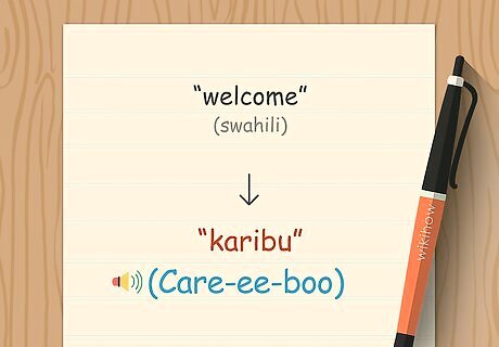 Swahili - Karibu. This is how you welcome one person. For more than one, you would say "karibuni." Care-ee-boo Care-ee-boo-nee
