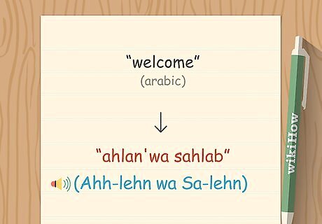 Arabic - أهلا وسهلا (Ahlan'wa sahlab). Tricky for English speakers, you will have an easier time if you think about it as three separate words that you run together. The first and last sections rhyme. "Ahh-lehn wa Sa-lehn"