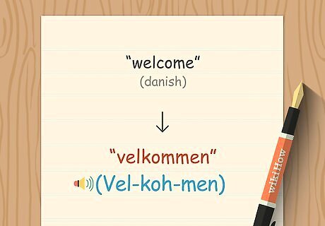 Danish - Velkommen. Simple and easy, it almost sounds like the English "welcome." However, use a V instead of the W, and add the word "men" to the end. "Vel-koh-men."