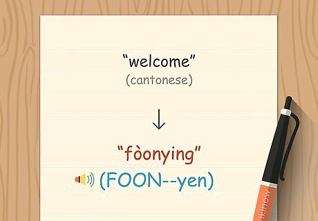Chinese (Cantonese) - 歡迎 (fòonying). This one is tricky if you've never spoken Chinese. Inflection is everything. Put a little extra stress on the first half of the word. FOON--yen.