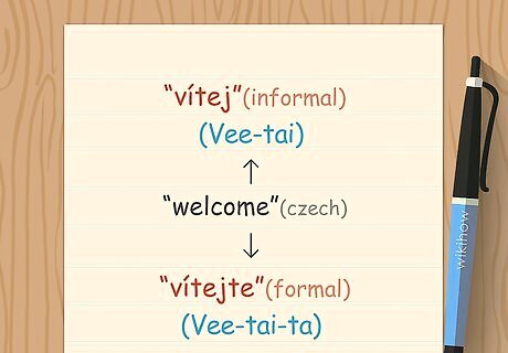 Czech - Vítej (informal) or Vítejte (formal). There are many welcoming lines in Czech, but these are the two easiest ones to use. The other seven or so options are for specific cases, but these two will work almost anywhere. Vítej -- "Vee-tai" Vítejte -- "Vee-tai-ta"