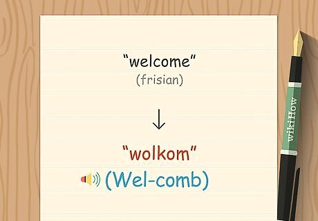 Frisian - Wolkom. This is the closest "living" relative of English. It makes speaking really easy -- so just match it close to "welcome," but use a longer O sound at the end (like in the word "comb.") "Wel-comb"