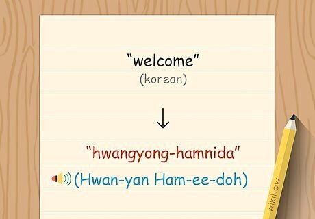 Korean - 환영합니다 (hwangyong-hamnida). Perhaps the toughest one on the list, it is a lot of syllables that come pretty quickly. Take your time learning each part before putting it all together. "Hwan-yan Ham-ee-doh"