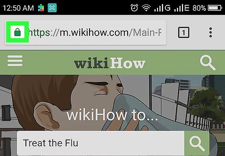Navigate to the website. When the site is finished loading, you’ll see a lock icon to the left of the URL in the address bar.