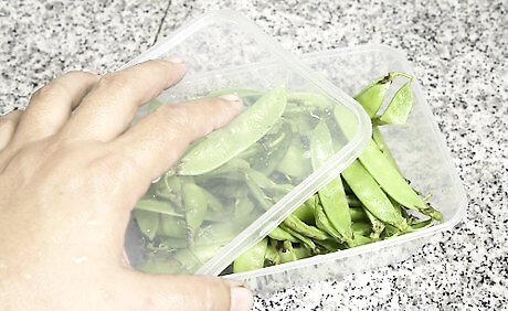 Wash snow peas prior to storage. Allow them to dry on a wire rack and place in a paper bag for storage.