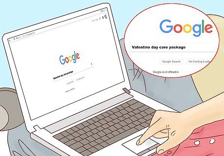 Shop online. Many businesses online will arrange and deliver a Valentine’s care package for you. Simply go online, search for Valentine’s Day care packages, and find a company that meets your needs. Look for a something that you think the recipient will like and that meets your budget. For example, if you are sending a care package to a college student, an organization at their college or university may offer premade packages that you can have delivered to them.