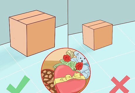 Find the right box. Once you have all of your care package materials ready to send, find a box that they all fit in. This box needs to be large enough to accommodate everything, but not so large that your things are loose in it. It also needs to have a lid or flaps that you are able to close and seal with tape. If you do not have a box of your own, you can buy one at the Post Office or at the store of the private shipping company.