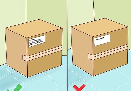 Use the correct address. With the care package assembled, write the recipient's address on the box. Make sure that it is clearly visible and that it contains their full address. You can also print off a shipping label using your computer.