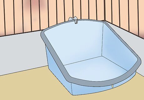 Add a latch-secured litter pan for each ferret in the cage. Buy a ferret litter pan that latches to the cage so your ferret doesn’t overturn it. Fill the pan with 1 in (2.5 cm) of a wood- or paper-based litter. Don’t use cat litter or other clumping or scented litters—these can cause breathing problems or be a choking hazard. Ferrets can be territorial about their litter boxes, so keep it in the same spot and provide a pan for each ferret in the cage. If you have 2 ferrets, for instance, give each a litter pan in opposite corners. Plan to clean the litter pan daily.