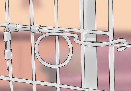Choose a cage with a strong door latch, and always use it. The cage door should have a sturdy latching mechanism that you can easily secure. If the door doesn’t have a strong latch, the ferret may be able to push or pull the door open and escape. Remember that even the sturdiest latch is useless if you don't actually secure it in place! Make sure you latch the door every time you close it. Some people stick a binder clip over the door and frame wires to add an additional latching mechanism.