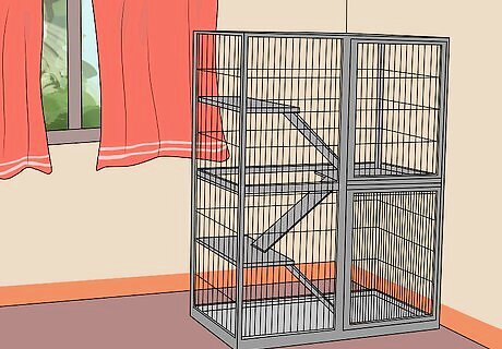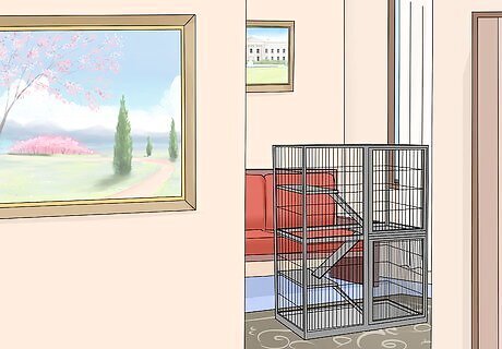 Put the cage in a semi-active location in your house. Ferrets like attention when they’re awake, so don’t tuck the cage away in a back room where nobody goes. However, they also sleep a lot, so don’t place it in a very loud or hectic area. A den or home office might make a good spot, for instance.