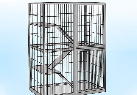 Pick out a cage with a solid, comfortable floor. Avoid cages with wire floors, since these are uncomfortable for ferrets to walk on and may permit their feet to get caught between the wires. Look for a cage with a solid pan or sturdy carpeting covering the floor. Many ferret cages have removable floor pans, which can make cleanup much easier.