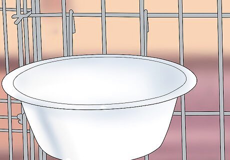Choose a spot in the cage for a sturdy food dish. Identify a spot on any of the levels to serve as the feeding area. Ferrets like to push and lift their food dishes (which leads to spills), so choose a heavy ceramic dish or, even better, a food dish that latches to the cage bars. Check pet retailers for latching food dishes designed specifically for ferrets.