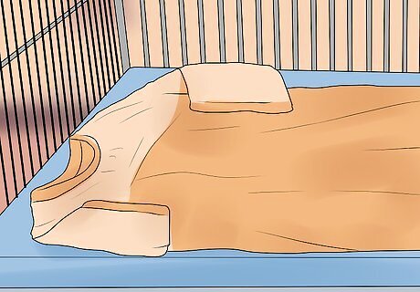 Provide bedding or a hammock for your ferret to sleep in. Buy a ferret bed or create a bed out of an old T-shirt during warmer weather. If it gets chilly where you live, switch out the T-shirt for fleece blanket or sweatshirt scraps during winter. You can also find ferret hammocks at pet stores and online, and many ferrets really enjoy these. However, not every ferret is a fan of hammocks. You might want to set up both a hammock and a bed to see which one your ferret prefers—or just keep them both set up. Give your ferret a hide or shelter so it can burrow when it feels anxious or frightened. Provide at least as many bedding spots as there are ferrets in the cage.