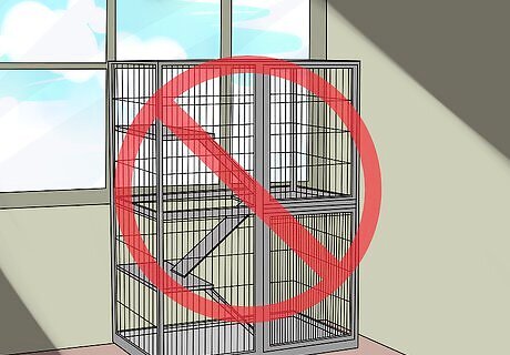 Keep the cage out of direct sunlight, especially in warm weather. Ferrets are very sensitive to temperatures above 75 °F (24 °C), and a sunny indoor location can easily rise above that level. Place the cage near a window if you're using it for ventilation, but make sure the sun doesn't shine directly into the cage. If your ferret has been in the sun and seems lethargic or ill, it may be suffering from heat stroke. Call your vet right away.