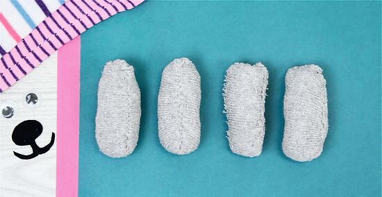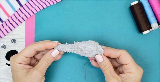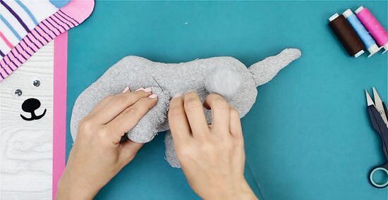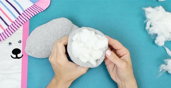 Stuff the sock firmly. Fill with your filling of choice, such as craft supply fill or homemade fill made from scraps, pantyhose, etc.