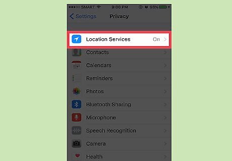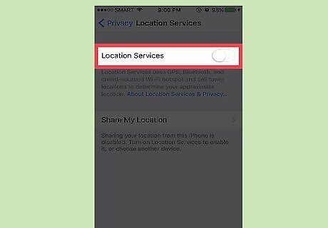 Tap the slider to the right of "Location Services" if the slider is grey. When Location Services are enabled the slider will turn green.
