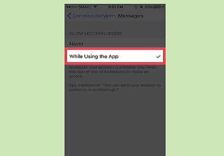 Tap While Using the App. This function is enabled by default, but you may be prompted to adjust your settings if it's disabled.