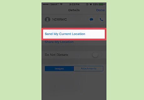Tap Send My Current Location. A map with a pin drop indicating your location will be sent. If you're on the move, tap Share My Location instead. This is a good option if you want to send real-time updates with the recipient.