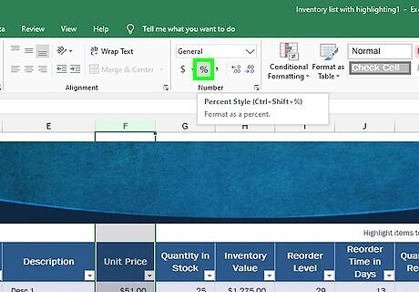 Select the filled cell or cells you wish to convert to a percentage. The filled value must be a number or formula. When converted to a percentage, Excel will multiply this number by 100 and add a percentage symbol (%). For example: 1 will format to 100% 10 will format to 1000% .01 will format to 1% 1/5 will format to 20%
