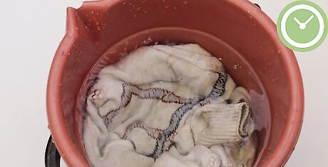 Let the jumper soak in the water for at least 6 hours. This relaxes the fibers in the fabric so they can be more easily shaped. You can leave the jumper in the water for longer if you’d like, even overnight. Don’t let the fabric soak for more than 24 hours or it could start to mildew. Stir the jumper around occasionally to make sure all of the fabric is getting wet.