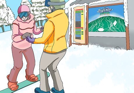 Try snowboarding lessons before your trip if you're new to the sport. Lessons can help prepare you for the slopes and ease any concerns you have about snowboarding on your trip. Even if you're not new to snowboarding, they can be a nice refresher before you hit the slopes in Canada. Check out nearby skiing and snowboarding schools to see if they're offering lessons you can take. Many ski resorts also offer snowboarding classes.