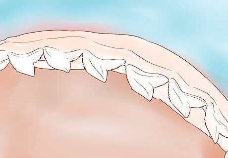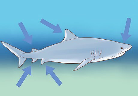 Observe the skin color. Color is important with tiger sharks because their name is derived from the stripes visible along their backs (there are often spots of the same shade). The shark itself is usually gray and the vertical stripes are darker, close to black. However, the stripes usually fade in older adult tiger sharks. Tiger sharks can also be blue or light green. Their underbellies are usually white or light yellow.