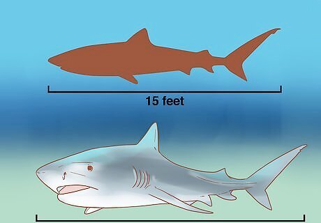 Observe their length. Tiger sharks grow to become some of the largest sharks in the world. Large species can get up to as long as 20 to 25 feet (6 to 7.5 meters) and weigh about 1,900 pounds (900 kg). However, many remain under 15 feet (4.5 meters) and less than 1,800 pounds (800 kg). Baby tiger sharks (called pups) are born between one and three feet long (40-90 cm) and grow fast the first few years of their lives. Pups potentially double in size their first year.