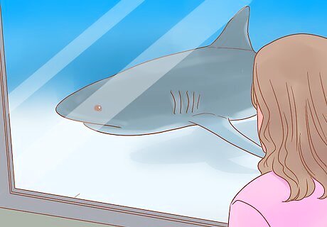 Visit a tiger shark in an aquarium. It is rare, but you may be able to find an aquarium with a tiger shark. The Aquarium of the Pacific in Long Beach, California, took on a female tiger shark in 2009. Most aquariums are new to caring for tiger sharks, so they have to be very cautious.
