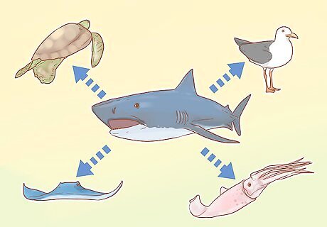 Look at what they're eating. Tiger sharks are carnivores, known to eat pretty much anything they can find. They eat other sharks and fish as well as sea turtles, birds, sting rays, dolphins, squid, and crustaceans. They are good scavengers due to their keen senses of sight and smell. Researchers have found all kinds of things in tiger shark stomachs, including antlers and trash.