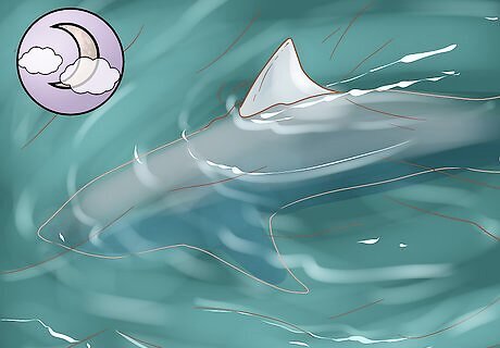 See them at night and on cloudy days. Tiger sharks are nocturnal, rising to the surface to hunt for food either at night or on days that are overcast. They swim close to shorelines to do their hunting. If you are trying to observe a tiger shark, it is best to do so on a cloudy day.