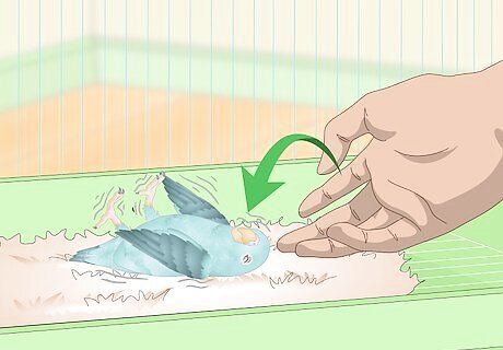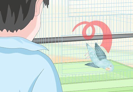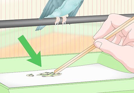 Examine their droppings. Your parrotlet's droppings can tell you how they're feeling. Normal droppings should have dark brown feces with white tips. Any yellow, green, red, or black discoloration should be checked out by a vet. Red and black feces are a sign of internal bleeding. Call your vet immediately. If there is undigested food in their droppings, they may have internal parasites. If their droppings are green, it may be a sign that they are not eating. Changes in the frequency or amount of droppings can also be a sign of sickness.