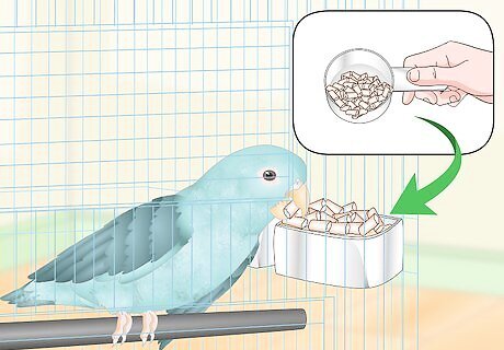 Measure how much they are eating. Any change in eating or drinking habits can signal a problem. Check their cage for any uncracked seed or uneaten pellets. These might mean that the parrotlet is not eating. Frequently empty water or food bowls may be a sign that they are eating more than usual. Drinking more water than usual can be a sign of dehydration. Eating more than normal may indicate that they are struggling to digest their food. This could be caused by avian gastric yeast or macaw wasting disease. If your parrotlet abruptly stops eating or drinking, this is a serious sign that something is wrong and that the bird could be very ill.