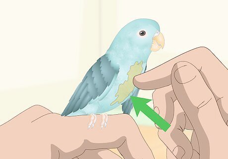 Find any matted feathers on the chest or vent. Stained, wet, or matted feathers may mean that the parrotlet is either vomiting or has diarrhea. These stains often appear on the chest of the bird or on the vent under the bird.