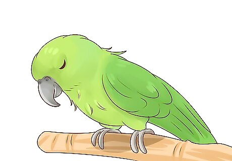 Be wary of depression or lethargy. Depression and lethargy are some of the biggest behavioral indicators that there is something wrong with your bird. If your Amazon parrot seems to have less energy or seems to sleep all the time, this may be a cause for concern – especially if these symptoms are paired with some of the other symptoms relating to vitamin A deficiency. You should also monitor your bird’s behavior to see if it refuses to fly, seems to play with its toys less than usual, or prefers to stay inside its cage rather than interacting with its owners.