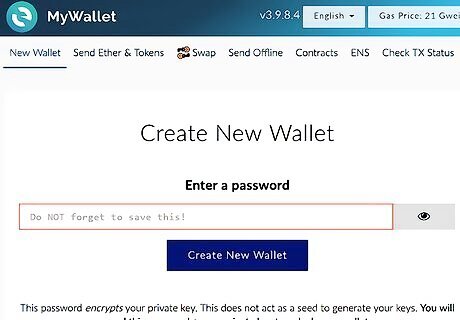 Set up your Ethereum wallet. Open your wallet and add a new account. Give your account a memorable name and record your password to keep in a secure place. Keep in mind that anyone who has your password can access your wallet and all of the Ethereum you have stored there. Copy the address (a string of characters starting with "0x") to a text file or write it down somewhere handy. This is the address you'll give to your pool so your Ethereum can be deposited. It isn't necessary to secure your address the way you do your password – it only allows anyone who has it to deposit Ethereum into your account, not to withdraw anything.