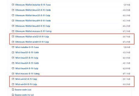 Download the Ethereum browser if you're new to cryptocurrency. The Mist package includes the Ethereum browser as well as the official Ethereum wallet. This package includes messaging, social networking features, and tutorials that are helpful for beginners. To download the Mist package, go to https://github.com/ethereum/mist/releases and scroll down until you find the most recent version for your OS. It will be the version with the highest number. When you download the zip file, you'll need to extract it using a file extraction tool. Your browser may have already come with one of these – if not, you'll need to download one. If you're familiar with cryptocurrency and already know what you're doing, you can use any cryptocurrency wallet to store the Ethereum you mine.
