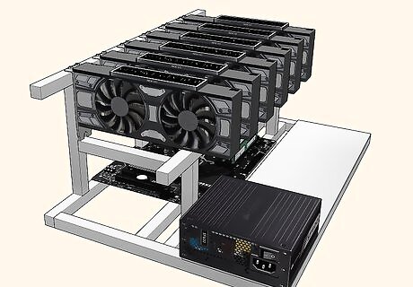 Set up your rig in an open-air mining case. Running 6 GPUs can generate a lot of heat. An open-air case provides better cooling for your rig than a closed case with fans. Keeping air circulating around your GPUs ensures optimal performance. You can build your own case with basic building materials such as wood and aluminum, or you can buy a pre-built frame. Even a pre-built case typically won't cost you more than $50 USD.Tip: If you plan on running your rig 24/7, it's going to put off a lot of heat. In addition to an open-air case, you'll likely need multiple fans blowing on it constantly.