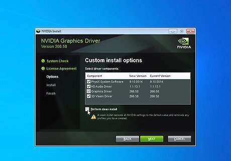 Install your video card drivers. Head to the website for the manufacturer of your video cards and download the current version of the driver for your video cards. Install the driver as you normally would, then reboot your rig. Your GPUs should all appear in your Device Manager. If you have problems getting the OS to recognize all of your video cards, you may need to play around a little bit. You can tweak your BIOS settings, or uninstall all of your GPUs and then reinstall them one by one. If you have to delete drivers, use an uninstaller program to remove them cleanly – don't just move them to the trash.
