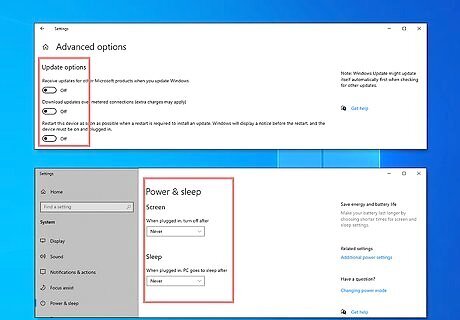 Modify your Windows settings for more efficient mining. Disable automatic updates and adjust your power settings so that Windows never sleeps. Sleeping or restarts will interrupt your mining. You don't necessarily have to disable automatic updates. If you do, monitor for updates and install manually when you can. If you're running anti-virus software, add an exception for the Claymore mining executable file, EthDcrMiner64.exe. This will keep the program from flagging the file as a virus and attempting to disable or delete it.