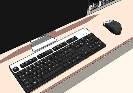 Connect a standard keyboard, monitor, and mouse. You need a keyboard, mouse, and monitor so you can install the OS and software to run your mining rig. You can use old or used models for these, they don't have to be anything fancy. It's possible to use the monitor, mouse, and keyboard from your personal computer and just swap them back and forth when needed. Check your manuals or the manufacturer's website for compatibility questions.