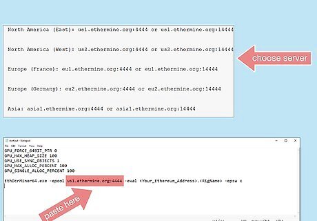 Update the server string with the server you want to use. Below the code on the pool's website, you'll see a list of servers. Choose the server that is located nearest you, and copy the address string from the website. Paste the address string in your text file, replacing the server string or filler text that was originally in the code.