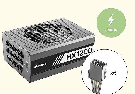 Buy a 1200W power supply. If you're running 6 GPUs, you need at least 1200 watts to support the total power draw for your system. You also want to make sure you have a buffer of 10 to 15 percent in case of fluctuations. Your power supply will typically cost you between $100 and $200 USD. Make sure your power supply has enough connection to support the number of GPUs you're running. Since your energy costs have the most direct impact on your mining profits, get a plug for your rig that has energy monitoring capabilities. If your rig is consuming too much energy, you can shut it down temporarily.