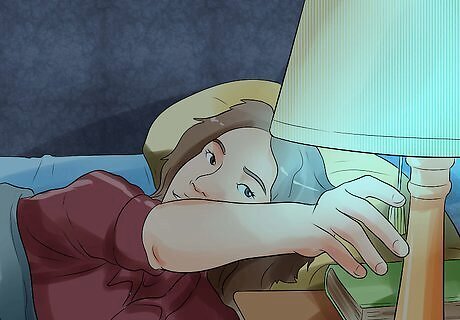 Dim the dashboard lights. Bright dashboard lights can cause unnecessary eye strain when driving at night, which in turn can make you tired more quickly. You can soften this glare by turning the dimmer switch—usually located near the headlight knob—down until the dashboard shine less brightly than outside traffic markers reflecting your headlights. You can also adjust your outside mirrors so that they face downward in order to keep the direct glare of following vehicles’ headlights out of your eyes. It might seem counterintuitive, but it actually allows you to monitor overtaking vehicles from the reflection of their headlights on the pavement. Also be sure to eliminate other light sources from within the vehicle. If your passenger must read or navigate, a flashlight or book light will be less distracting than the vehicle's dome light. All video screens should be in the back seat.