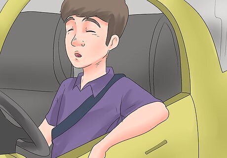 Take a 15-20 minute nap if you notice drifting or other driving errors. If you catch yourself drifting into the median or shoulder, slamming on the brakes due to a delayed reaction, or missing a stop sign, you are already experiencing dangerous symptoms of over-tired driving. You may not have taken any drugs or alcohol, but that doesn’t mean you aren’t impaired. You should pull over immediately and try to take a cat nap to refresh your energy. If you still feel extremely sleepy after your cat nap, don’t try to force it and continue on the road. Quit while you’re ahead and get a good night’s sleep before resuming your drive.