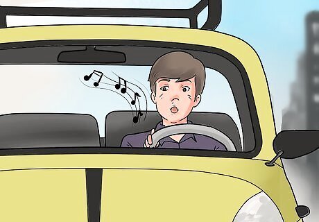 Switch off the soothing music. Music can be a great way to stay alert and engaged, but you should consider the genre and beat of the music before switching it on. Slow ballads or soothing classical music can relax your body, lower your heart rate, and slow your breathing, effectively turning a potential stimulant into a soporific sonata. Similarly, avoid a podcast host or audiobook narrator whose voice strikes you as soft and calming. You can use them to relax during the day or fall asleep to at night, but putting them on in the car can be dangerously doze-inducing.