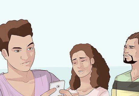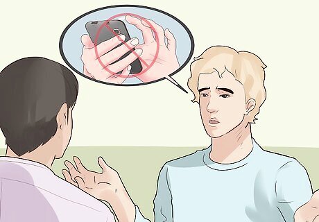 Have face-to-face interactions. Force yourself to set your phone aside and focus on the world and people around you. Instead of texting through dinner, put your phone down and ask your parents about their day. Talk to your friends and family in person more often. Instead of texting your friends all day, text them once asking if they want to hang out. Then you can talk to them all day in person instead of over the phone. Don’t hide behind your phone in uncomfortable social situations. Instead of using your phone as a safety net, try putting it away and talk to the people who are around you.