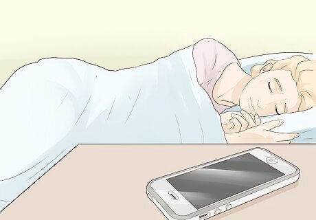 Put your phone away an hour before you go to sleep. Staring at a screen right before you try to go to sleep is going to make it more difficult to fall asleep. An hour before you go to sleep, text anyone you are talking to that you are going to sleep. Then take your phone out of your room and put it somewhere where it is safe, but far away from you. Don’t try to sleep with it right next to your head because you will spend more time focused on who might be texting you than sleeping. If you normally use your phone as an alarm clock to wake you in the morning, it's time to invest in an alarm clock instead.